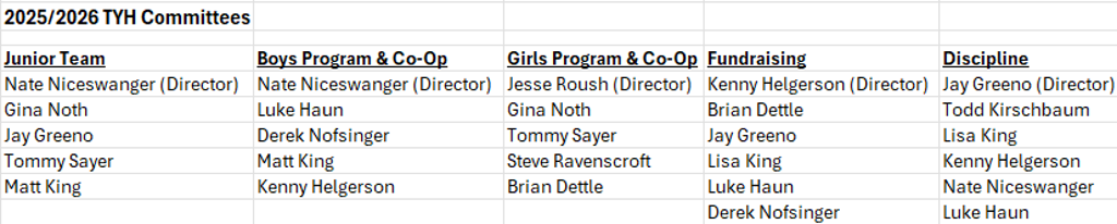 Board Member, Boys Co-Op Rep, Junior Team Rep